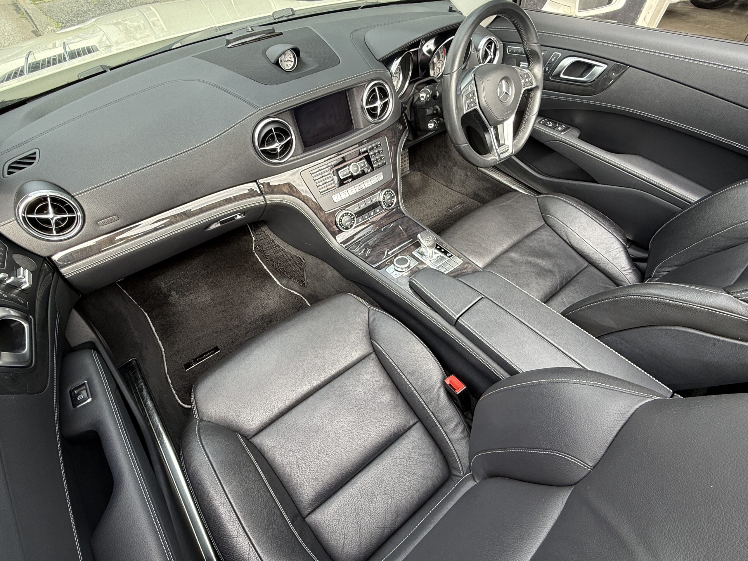 - 内装のコンディション:ブラックレザーのシートやダッシュボードの質感は極めて良好で、大切に扱われてきたことが一目でわかる状態を維持しています。